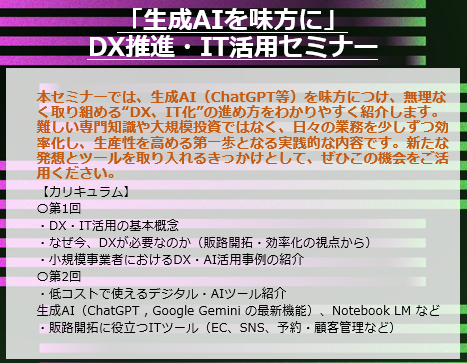 「生成AIを味方に」DX推進・IT活用セミナー 開催