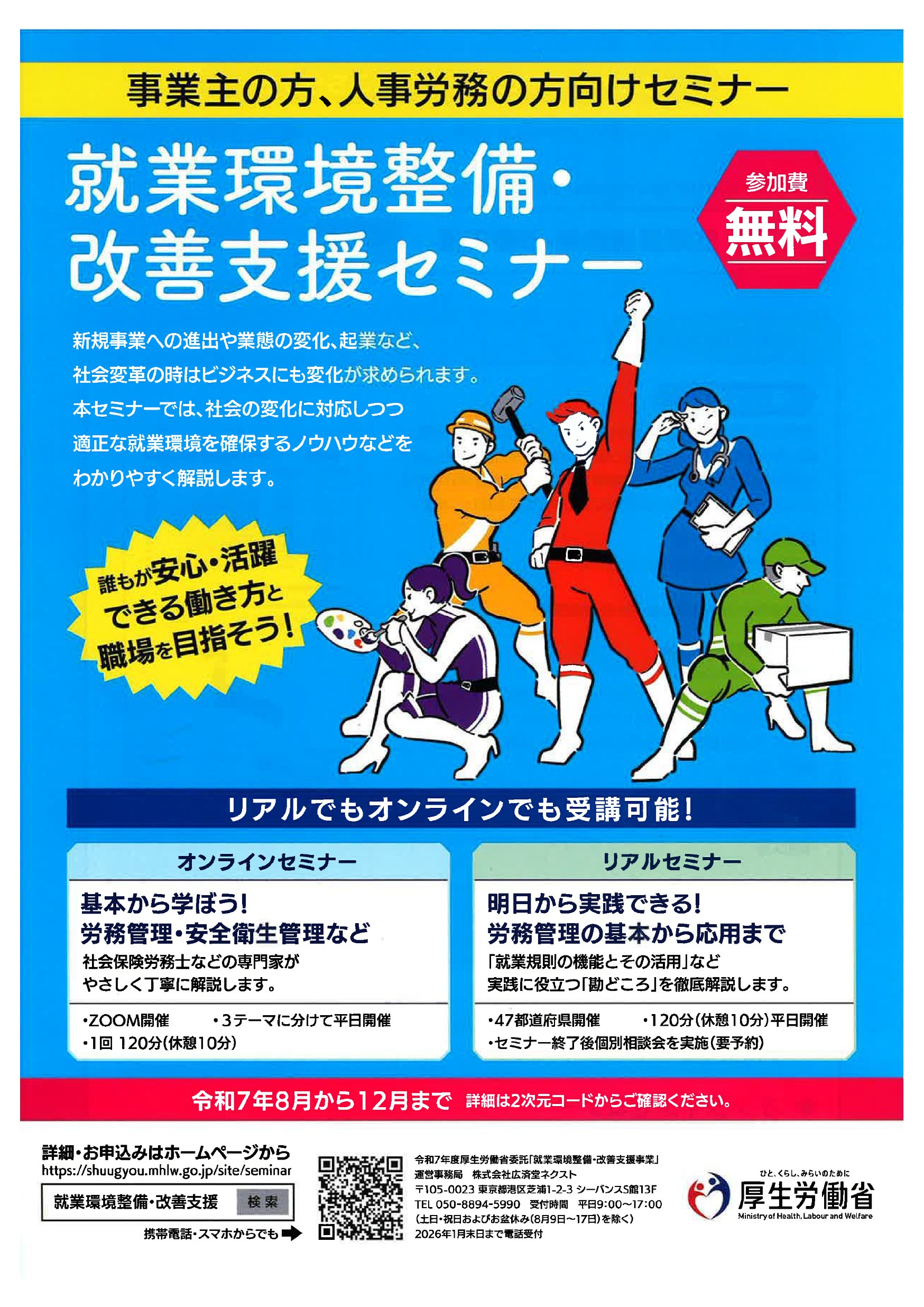 労働者を雇用する上で必要な労務管理や安全衛生管理などの基本的なルールを分かりやすく説明します。