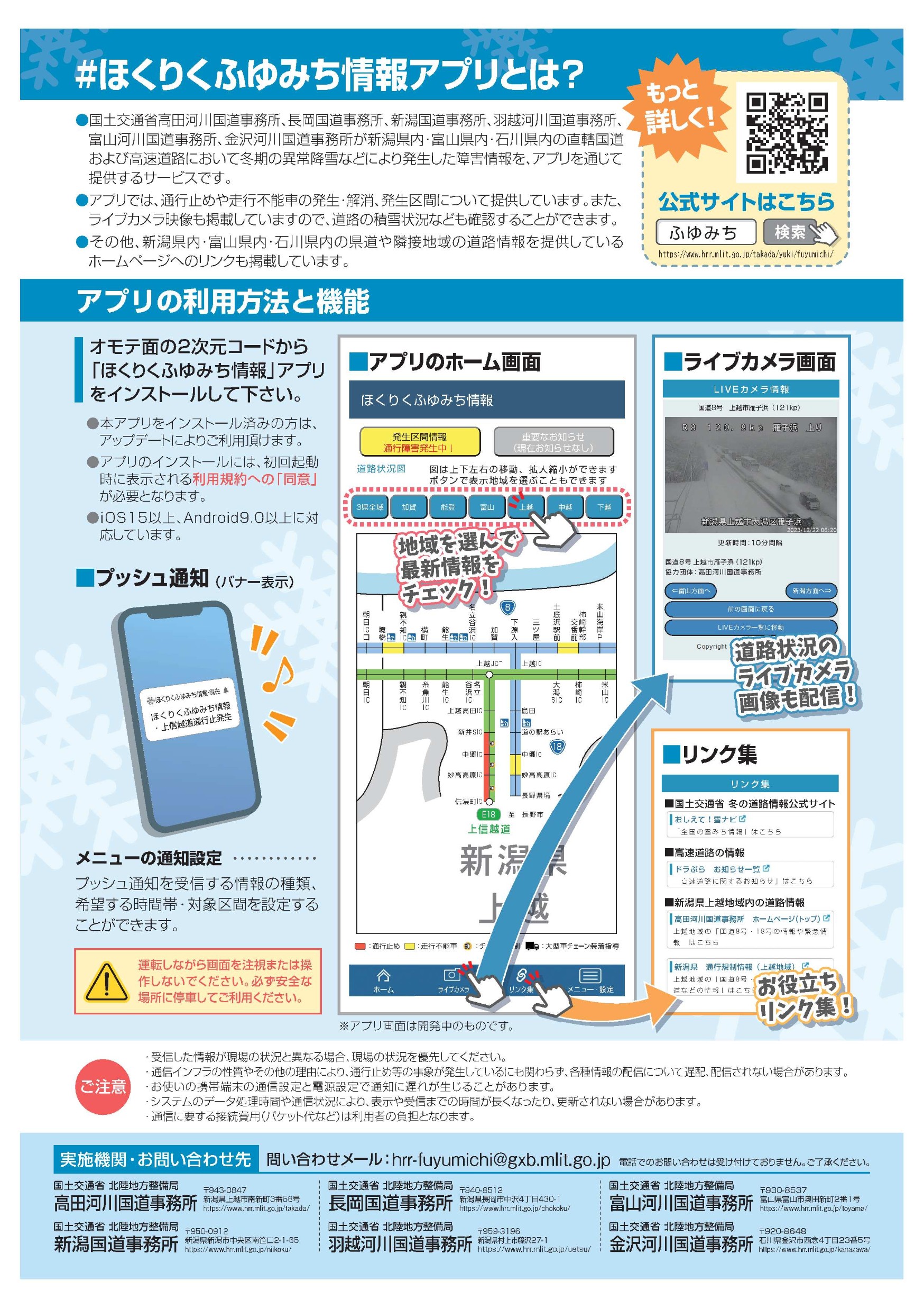 【金沢河川国道事務所からのお知らせ】ほくりくふゆみち情報アプリ 石川・富山・新潟で配信開始!