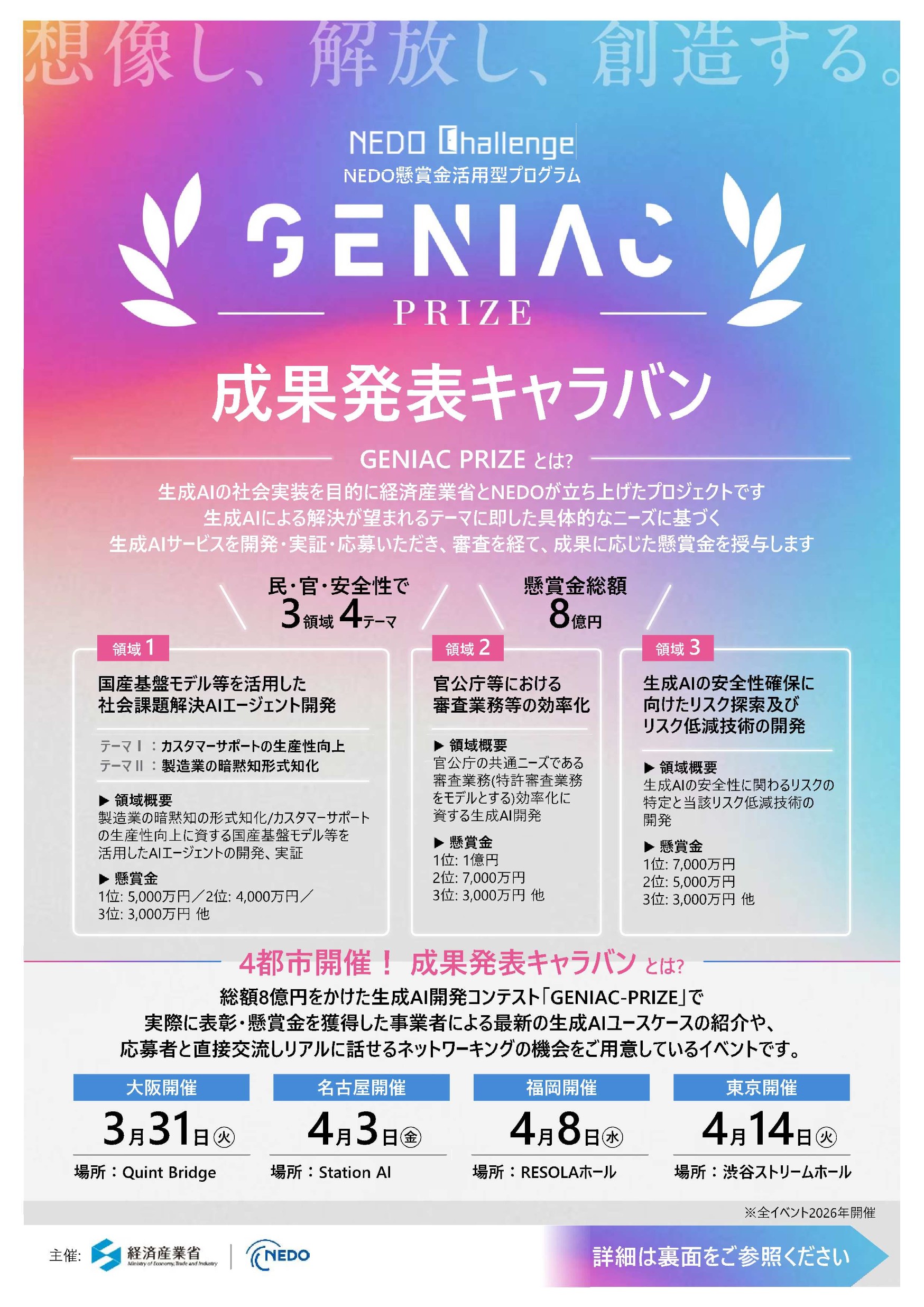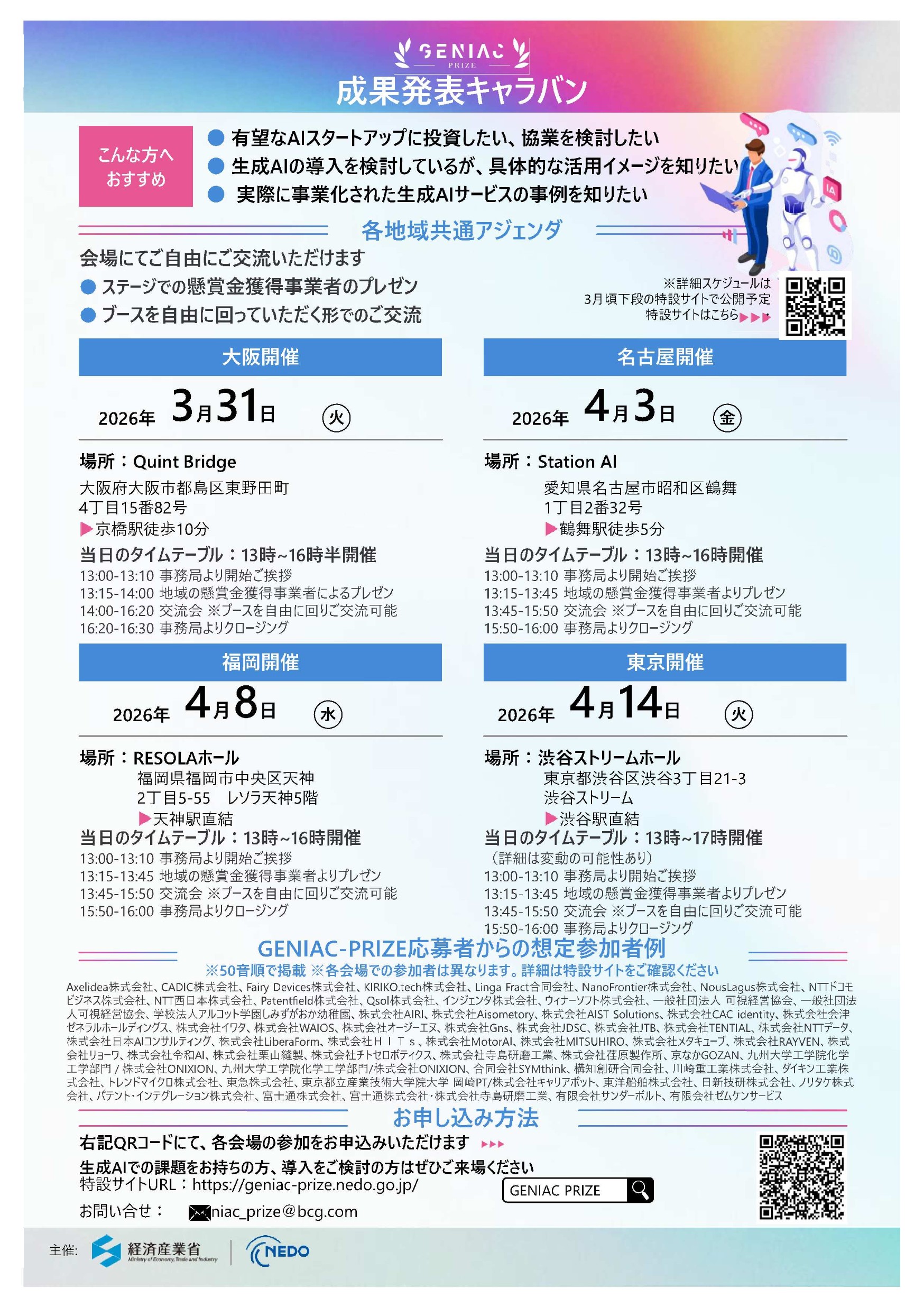【経済産業省】AIアプリケーションの開発に対する懸賞金事業「GENIAC PRIZE」の成果発表キャラバンのご案内